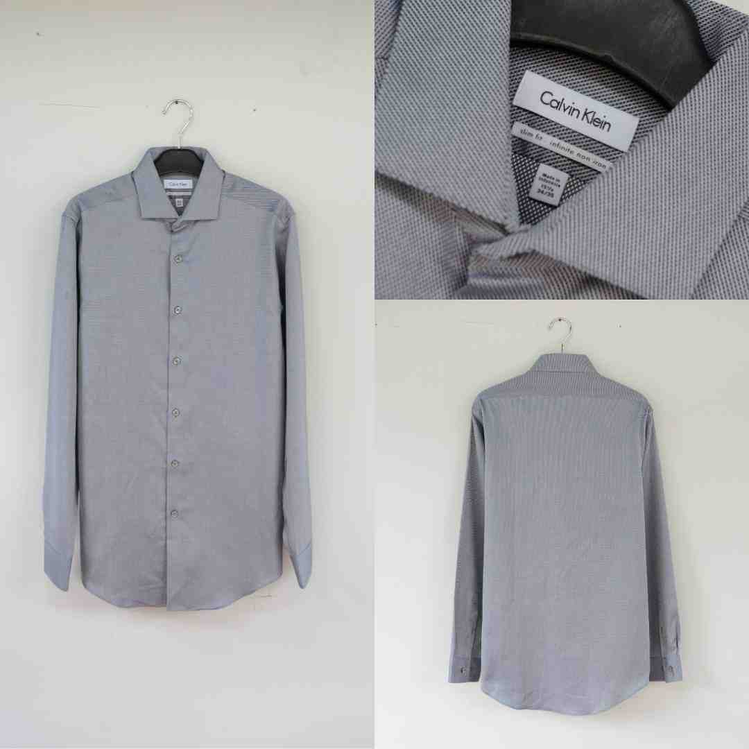 Kemeja Lengan Panjang Slim Calvin Klein Abu Titik Hitam Original